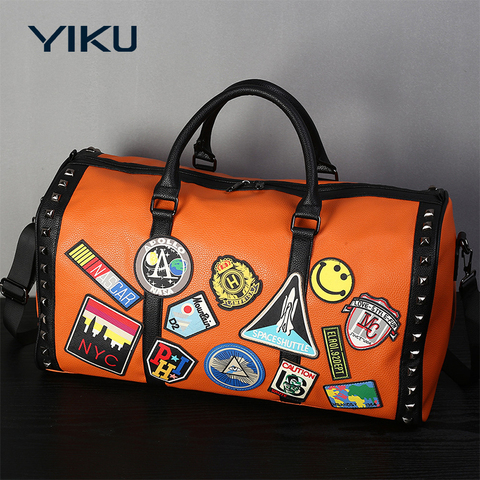 YIKU OEM ODM运动健身房防水大Pu皮革旅行行李袋定制标志男士行李袋旅行包